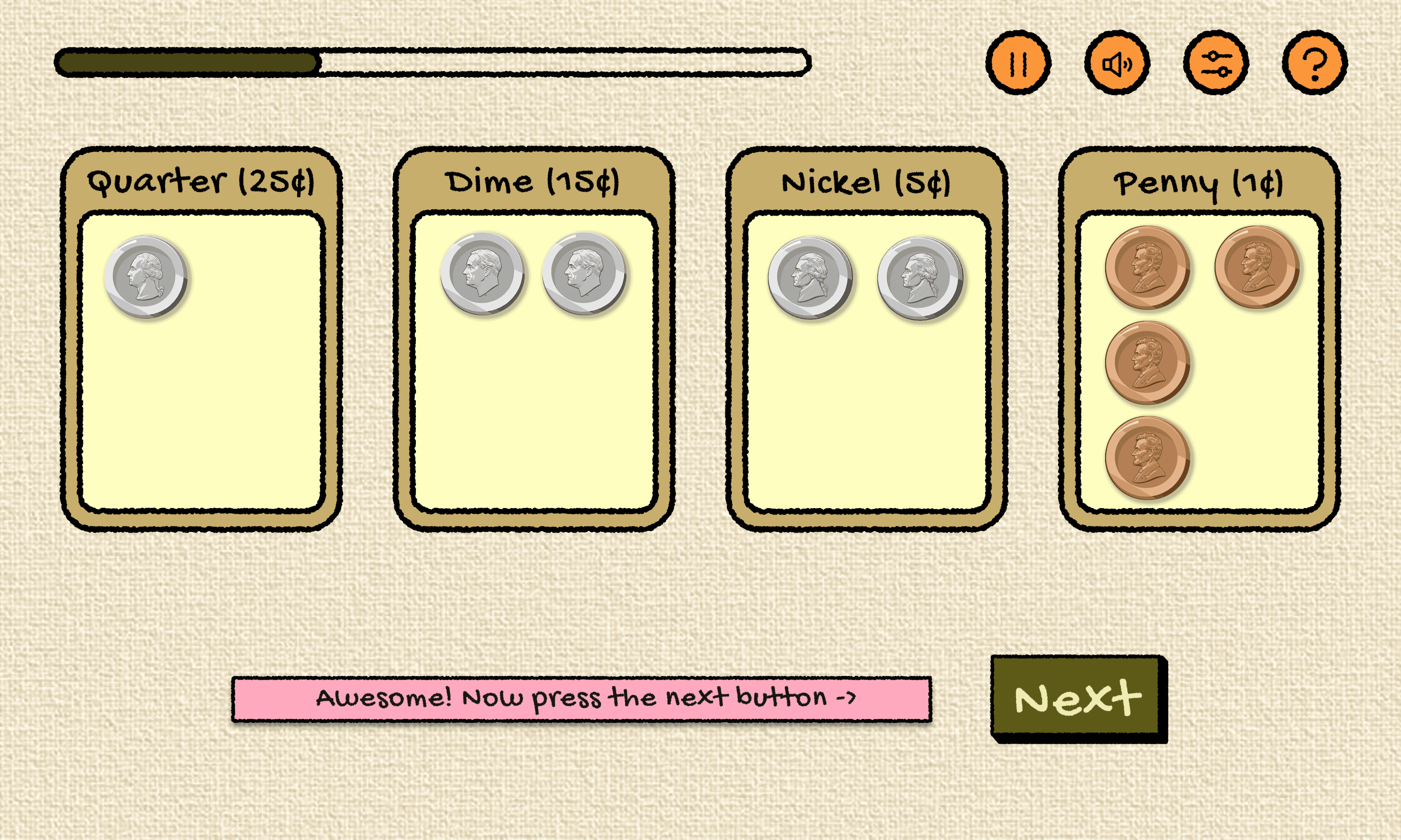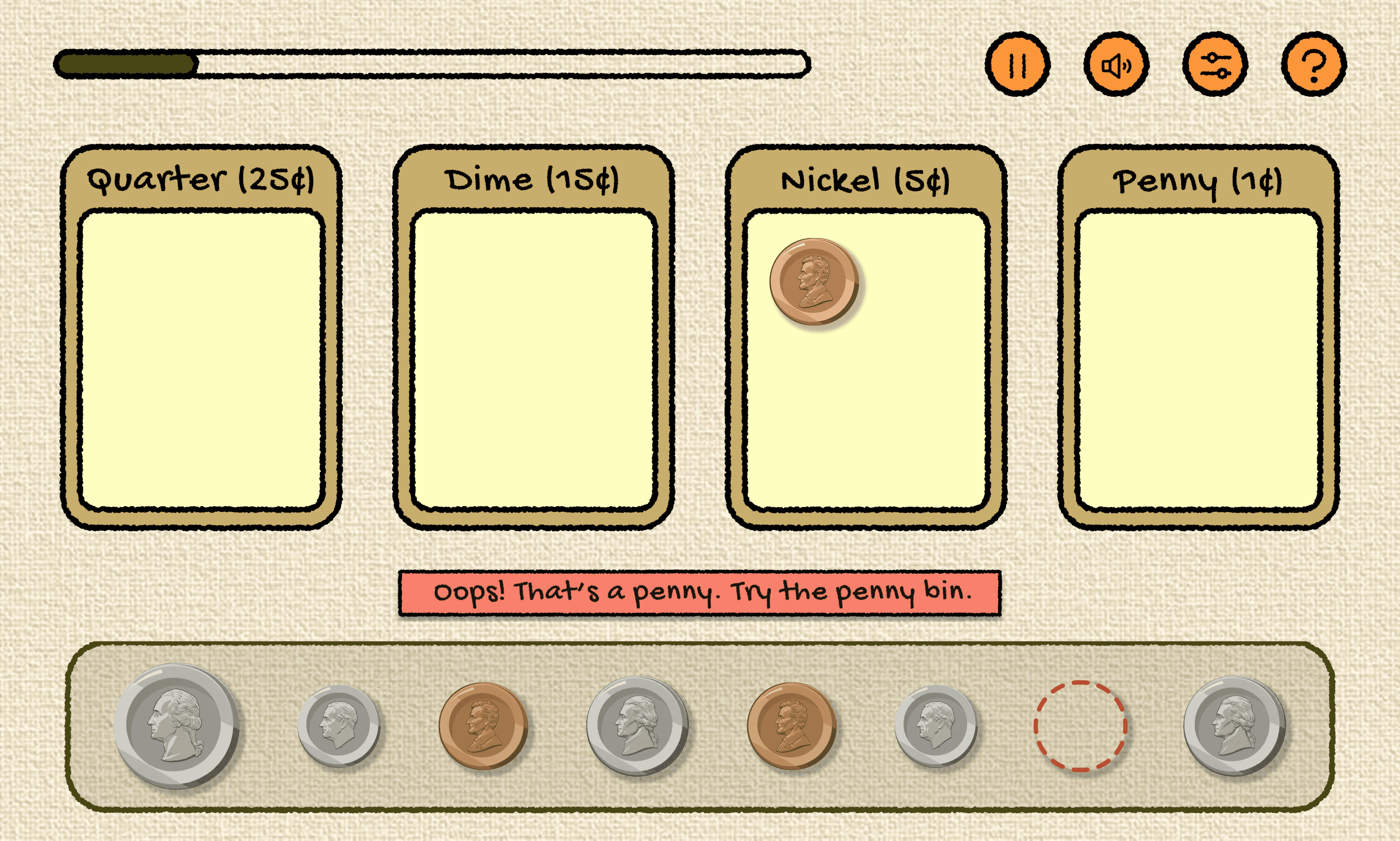 Screen 1: Sort the Coins